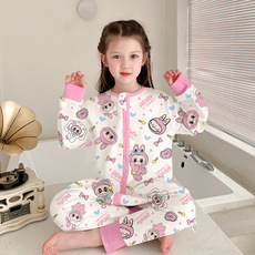 女童卡通睡袋连身衣春秋季新款女孩长袖分腿防踢睡袋中小童家居服