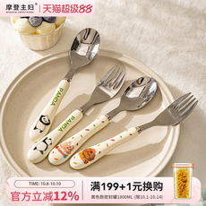 摩登主妇mototo熊猫可爱不锈钢叉勺套装创意儿童陶瓷叉子勺子餐具
