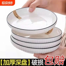 日式餐具加厚深圆盘陶瓷菜盘子创意早餐盘碟子和风家用碗盘碟套装