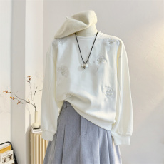 钉珠刺绣白色圆领卫衣女2024秋冬设计感宽松套头长袖打底小衫上衣