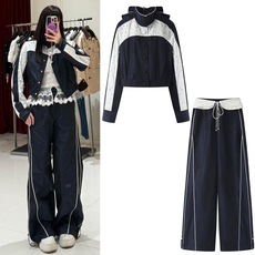 拼色刺绣设计感连帽卫衣女春秋季初中高中学生宽松大码棒球服外套