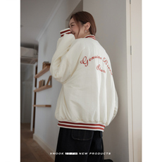 美式加棉棒球服外套女2024春秋新款设计感小众休闲刺绣宽松夹克潮