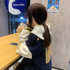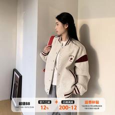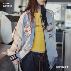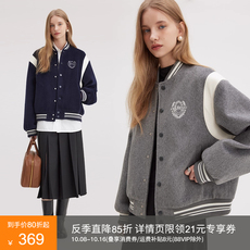 马登美式学院风棒球服夹克复古撞色刺绣外套百搭毛呢短上衣秋季女