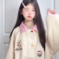 国潮kt猫咪刺绣小个子棒球服女春秋2023新款oversize美式复古外套