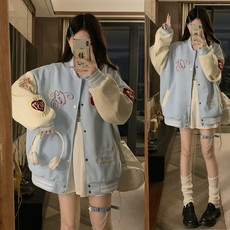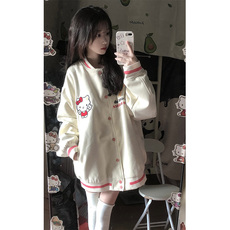 日系甜妹麂皮绒KT猫刺绣棒球服外套女2025秋冬新款潮牌情侣款夹克