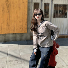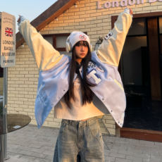 美式复古字母刺绣纽扣开衫卫衣女春秋oversize薄款宽松外套棒球服