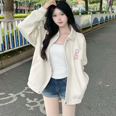 森女部落美式复古小熊刺绣百搭棒球服外套女2025新款宽松上衣秋季
