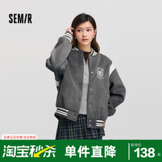 Amoeba美式复古字母植绒刺绣棒球服女春季新款原创国潮外套夹克
