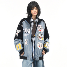 OV原创趣味小狗贴皮刺绣水洗牛仔棒球服外套女秋季宽松条纹夹克男