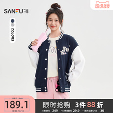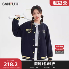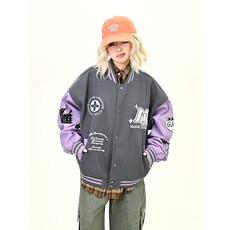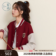 紫涵美式复古棒球服女2025年秋季新款学院风撞色刺绣胸针宽松外套