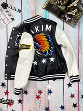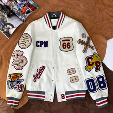 126KID 美式字母刺绣棒球服夹克男女秋冬情侣款潮牌PU皮袖外套