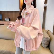 粉色格子拼接棒球服外套女2025春秋新款美式宽松学生百搭刺绣夹克