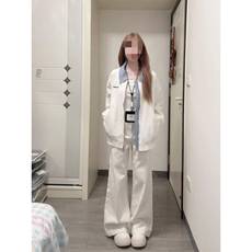 韩系复古绣花条纹假两件翻领外套女春秋设计感宽松百搭夹克棒球服