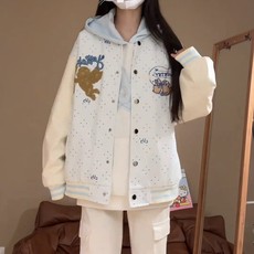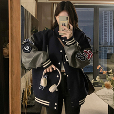 美式复古可爱丘比特刺绣波点拼接棒球服女秋冬潮牌宽松设计感夹克