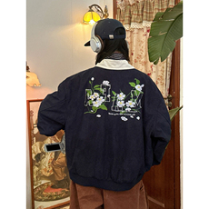 MYES牧野森国潮植物花卉刺绣飞行夹克男女情侣潮牌棒球服立领外套