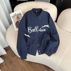 棒球服女春秋季新款时尚休闲短款长袖立领夹克飞行员字母刺绣外套
