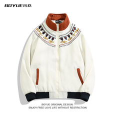 BOYUE帛跃国潮撞色立领民族风外套男女刺绣设计感工装棒球服夹克