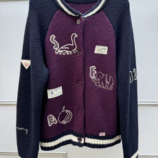 法式小众25年秋冬新款复古拼色排扣刺绣棒球服立领针织夹克毛衣女