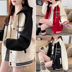美式复古棒球服外套女秋冬2025加棉加厚学生宽松连帽百搭刺绣夹克