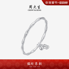 周大生足银S990手镯竹节实心银镯子铃铛手饰生日礼送妈妈支持刻字