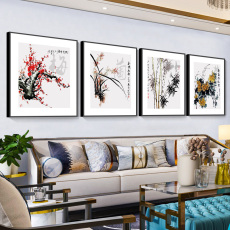 客厅装饰画书房挂画办公室字画沙发背景墙四联屏中式梅兰竹菊国画