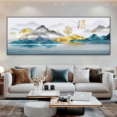 新中式山水画客厅挂画背景墙装饰画中堂壁画风景画国画办公室字画