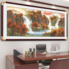 流水生财山水画办公室挂画新中式客厅装饰画沙发背景墙茶室风景画