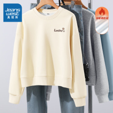 NEE真维斯圆领卫衣女2025新款秋冬季青少年加绒加厚短款上衣外套