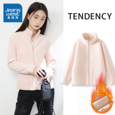 NOW真维斯立领摇粒绒外套女秋冬2025新款加绒加厚卫衣冲锋衣内胆