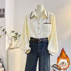 娃娃领加绒蕾丝衫长袖衬衫女2025秋冬季加厚减龄内搭打底小衫上衣