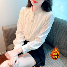 法式花边立领蕾丝衫长袖衬衫女秋冬磨毛加厚气质内搭打底小衫上衣