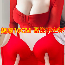 红色内衣超厚10厘米结婚新娘小胸聚拢一体式加厚显大收副乳文胸罩