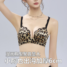 豹纹性感超厚6cm内衣女小胸聚拢显大加厚平胸专用漫画胸文胸套装
