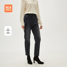 IHIMI海谧加绒9分弹力牛仔裤锥形裤女2025冬季加厚保暖修身裤子