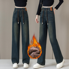 加绒加厚女士牛仔裤2025秋冬新款宽松直筒裤阔腿裤爆款裤子小个子