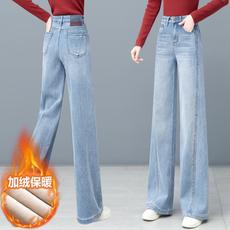 加绒直筒牛仔裤女秋冬新款加厚宽松复古高腰梨形小个子显瘦阔腿裤