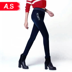 【亏本清】设计感加绒加厚牛仔裤女冬新款开叉长裤保暖字母显瘦裤
