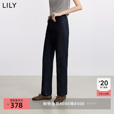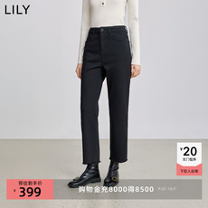 LILY2025冬新款女装经典百搭通勤九分裤小脚黑色牛仔裤加厚直筒裤