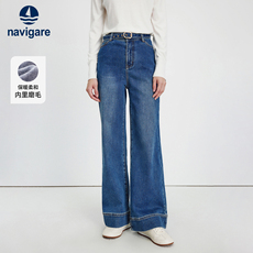 Navigare意大利小帆船休闲牛仔裤女士秋冬季新款加厚保暖磨毛长裤