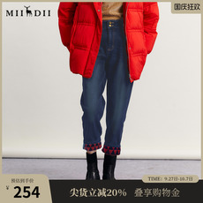 LILY2025冬新款复古原色拉毛翻边休闲通勤加厚小脚直筒裤牛仔裤女