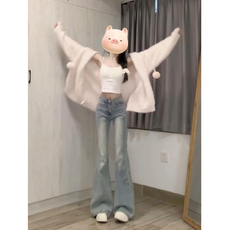 微喇牛仔裤女秋冬加绒加厚2025新款小个子高腰显瘦直筒阔腿马蹄裤