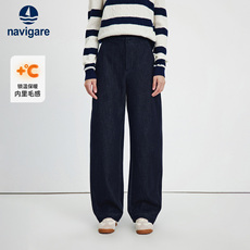 Navigare意大利小帆船莱赛尔棉牛仔裤女加厚保暖直筒休闲磨毛裤子