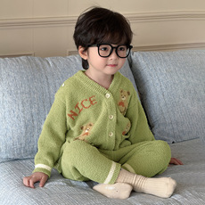 咔咔熊猫宝宝加绒针织裤秋冬儿童加厚卡通长裤男童女童保暖裤冬装