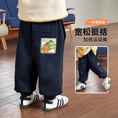 儿童加绒裤子男童外穿秋冬加厚一体绒新款2025新款宝宝休闲运动裤
