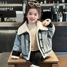 女童外套秋冬款2025新款儿童网红洋气加绒加厚羊羔毛女孩牛仔上衣