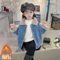 女童加绒外套秋冬装2025新款儿童加厚童装女孩羊羔毛牛仔上衣洋气
