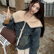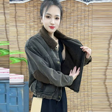 冬季羊羔毛牛仔加绒加厚外套女秋冬新款棉衣宽松百搭休闲上衣棉服
