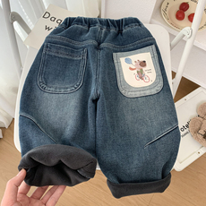 男童加绒牛仔裤秋冬款儿童裤子中小童装男孩休闲裤宝宝童装一体绒