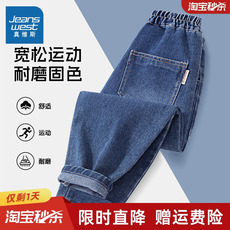 马卡乐童装儿童牛仔裤春秋款女童春季休闲宽松加绒裤子男童休闲裤