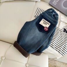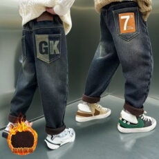 米修叻男童秋冬牛仔裤加绒加厚复古弯刀长裤儿童洋气外穿休闲裤子